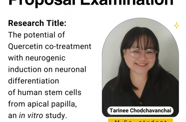 The Department of Anatomy is pleased to announce the M.Sc. Proposal Examination of: Tarinee Chodchavanchai Research Title:The potential of Quercetin co-treatment with neurogenic induction on neuronal differentiation of human stem […]