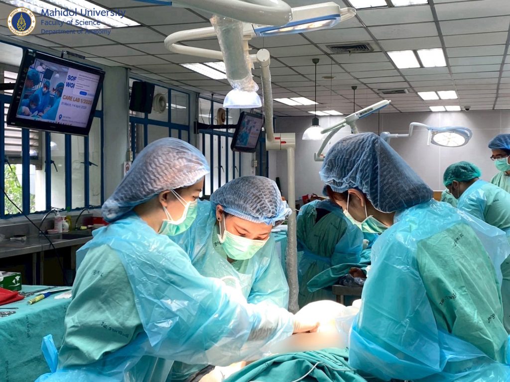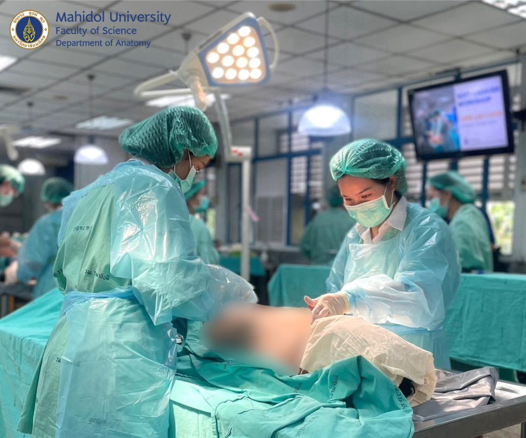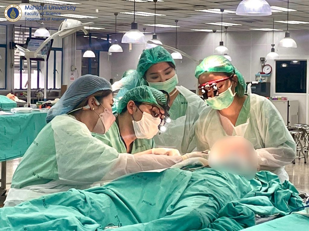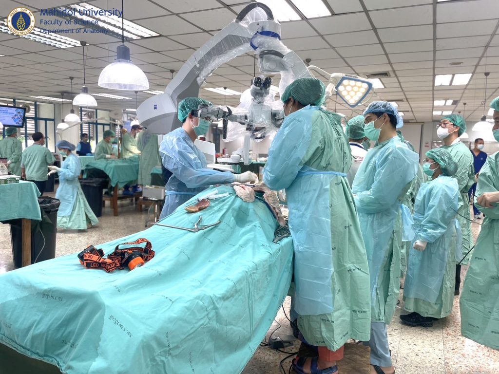 เมื่อวันที่ 31 มีนาคม และ วันที่ 1-4 เมษายน 2568 ผู้ช่วยศาสตราจารย์ นายแพทย์ ชินวุฒิ สุริยนเปล่งแสง และทีมเจ้าหน้าที่ของภาควิชากายวิภาคศาสตร์ คณะวิทยาศาสตร์ มหาวิทยาลัยมหิดล ได้ร่วมจัดการอบรมเชิงปฏิบัติการกับภาควิชาศัลยศาสตร์ คณะแพทยศาสตร์โรงพยาบาลรามาธิบดี มหาวิทยาลัยมหิดล ให้กับศัลยแพทย์สาขาต่างๆ อาทิ ศัลยศาสตร์ทั่วไป ศัลยศาสตร์ตกแต่ง ประสาทศัลยศาสตร์ ศัลยศาสตร์เต้านม ศัลยศาสตร์ทรวงอก ศัลยศาสตร์ระบบปัสสาวะ ศัลยศาสตร์ตับ ตับอ่อน ทางเดินน้ำดี ฯลฯ แพทย์ประจำบ้านต่อยอด แพทย์ประจำบ้านและนักศึกษาแพทย์ได้ฝึกหัตถการผ่าตัดในร่างอาจารย์ใหญ่แบบนุ่มเสมือนจริง (soft cadaver) เพื่อเพิ่มความชำนาญในการผ่าตัดรักษาคนไข้มากยิ่งขึ้น ณ ห้องปฏิบัติการ มหกายวิภาคศาสตร์ AN1-301