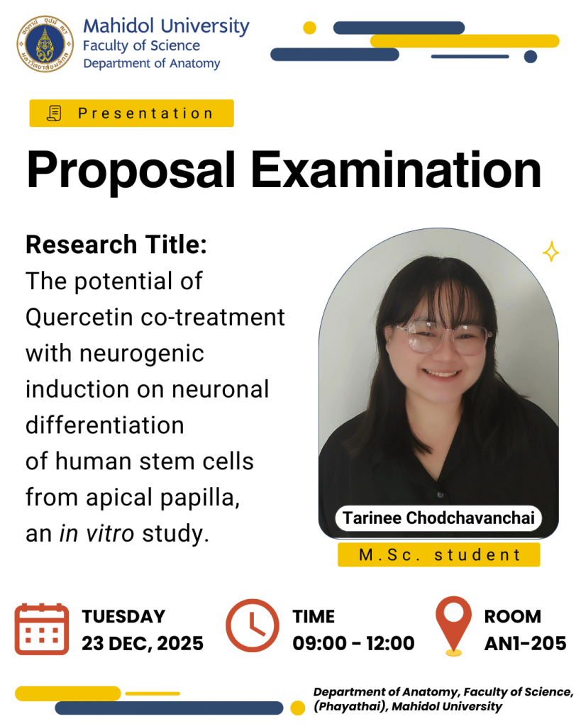 The Department of Anatomy is pleased to announce the M.Sc. Proposal Examination of: