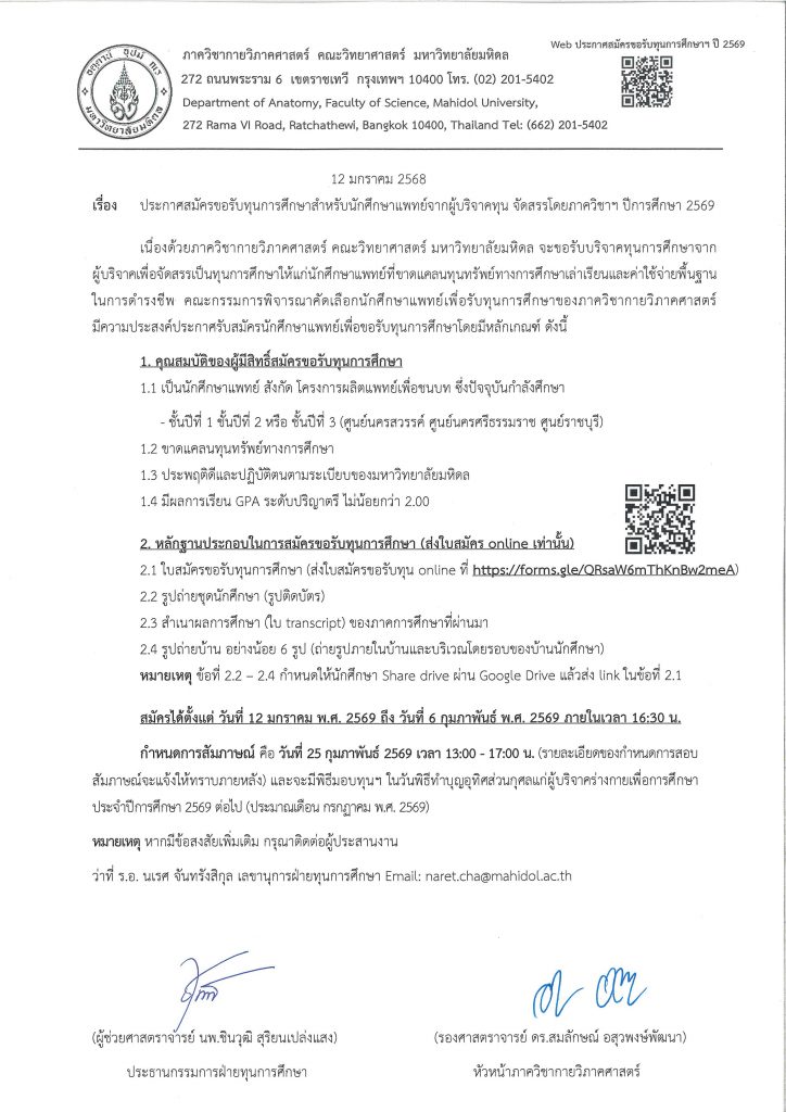 Tags: 2026, 2569, Medical student, Scholarship, ทุนการศึกษา, นักศึกษาแพทย์