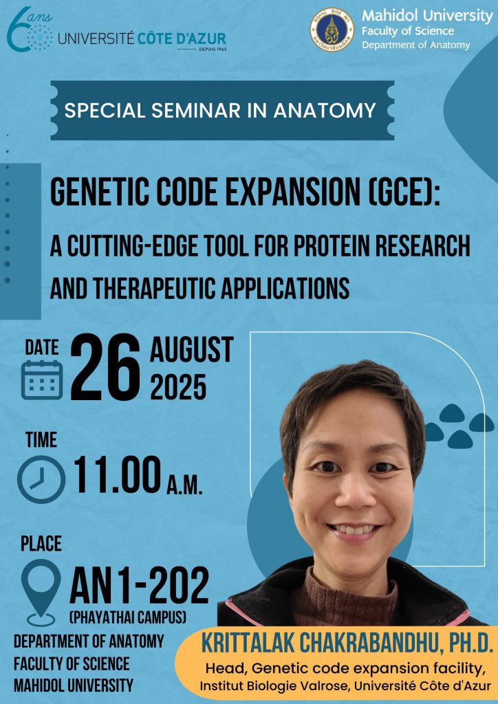 📍 Place: Room AN1-202, 2nd floor, AN1 building, Department of Anatomy, Faculty of Science, Mahidol University (Phayathai campus)
