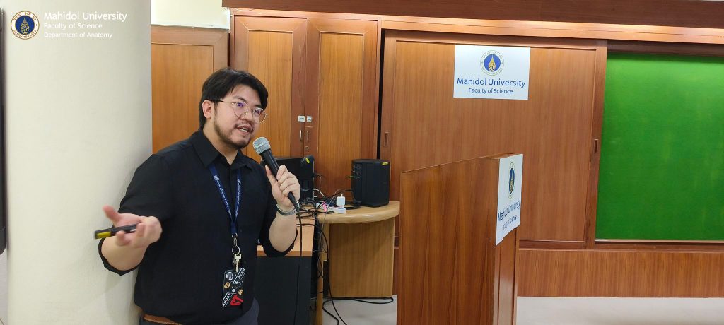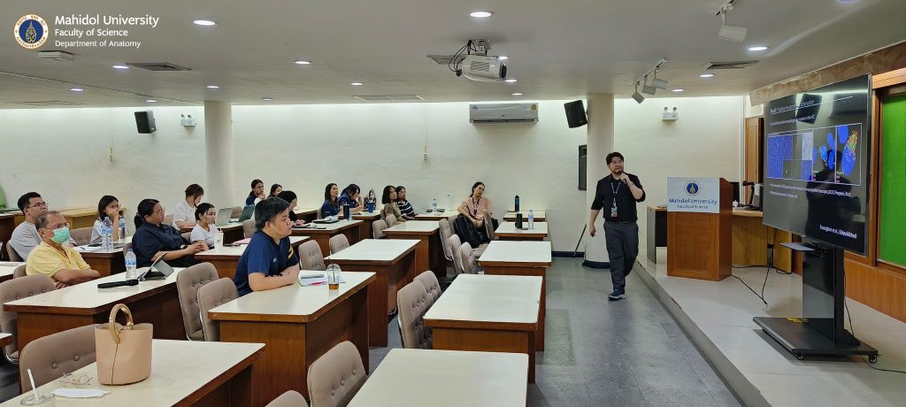 On Monday, September 15, 2025, the Department of Anatomy, Faculty of Science, Mahidol University, organized a Special Seminar in Anatomy entitled “Neural Marker Expression in Hemocytes: Linking the Immune and Nervous Systems in Crayfish.” at room AN1-202, 2nd floor, AN1 building, Department of Anatomy, Faculty of Science (Phayathai campus), Mahidol University.