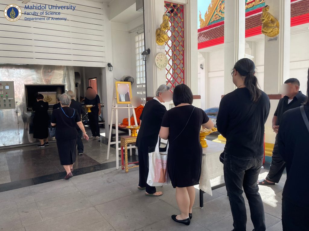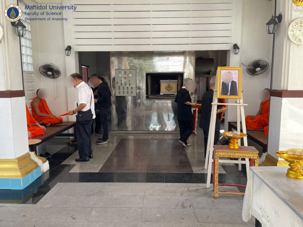 เมื่อวันที่ 17 มิถุนายน 2568 ภาควิชากายวิภาคศาสตร์ คณะวิทยาศาสตร์ มหาวิทยาลัยมหิดล ได้ดำเนินการฌาปนกิจร่างอาจารย์ใหญ่นายศุภกิจ ชัยรัตนฤกษ์ดี โดยมีญาติอาจารย์ใหญ่และเจ้าหน้าที่ของภาควิชาฯเข้าร่วมพิธี ณ วัดสุคันธาราม เขตดุสิต กรุงเทพฯ เวลา 10.00 น. การอุทิศร่างกายของอาจารย์ใหญ่ในครั้งนี้ ภาควิชาได้นำร่างอาจารย์ใหญ่ศึกษาเพื่อทางการแพทย์และเพื่องานวิจัยในการรักษาสภาพร่างที่คิดค้นขึ้นมาใหม่ ทั้งนี้ภาควิชาฯ จะนำเถ้ากระดูก เล็บและเส้นผมของอาจารย์ใหญ่เข้าร่วมพิธีพระราชทานเพลิงศพฯ ต่อไป ขอบุญกุศลที่ท่านอาจารย์ใหญ่ได้อุทิศไว้ เป็นผลบุญนำดวงวิญญาณของท่านอาจารย์ใหญ่สู่สุขคติในสัมปรายภพ