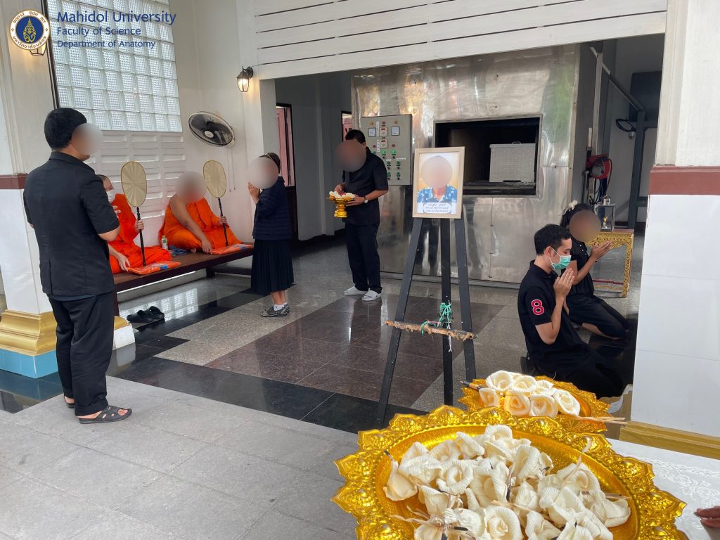 เมื่อวันที่ 17 กรกฎาคม 2568 ภาควิชากายวิภาคศาสตร์ คณะวิทยาศาสตร์ มหาวิทยาลัยมหิดล ได้ดำเนินการฌาปนกิจร่างอาจารย์ใหญ่ นายสุเมธ สมชาติ โดยมีญาติอาจารย์ใหญ่และเจ้าหน้าที่ของภาควิชาฯเข้าร่วมพิธี ณ วัดสุคันธาราม เขตดุสิต กรุงเทพฯ เวลา 10.00 น. การอุทิศร่างกายของอาจารย์ใหญ่ในครั้งนี้ ภาควิชาได้นำร่างอาจารย์ใหญ่ศึกษาเพื่อทางการแพทย์และเพื่องานวิจัยในการรักษาสภาพร่างที่คิดค้นขึ้นมาใหม่ ทั้งนี้ภาควิชาฯ จะนำเถ้ากระดูก เล็บและเส้นผมของอาจารย์ใหญ่เข้าร่วมพิธีพระราชทานเพลิงศพฯ ต่อไป ขอบุญกุศลที่ท่านอาจารย์ใหญ่ได้อุทิศไว้ เป็นผลบุญนำดวงวิญญาณของท่านอาจารย์ใหญ่สู่สุขคติในสัมปรายภพ